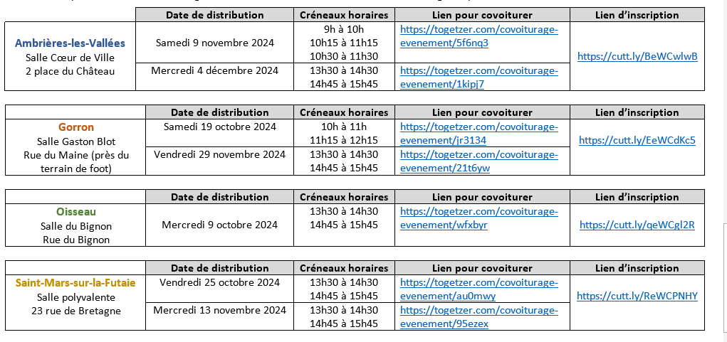 Voici donc les prochaines distributions organisées sur la Communauté de Communes du Bocage Mayennais :